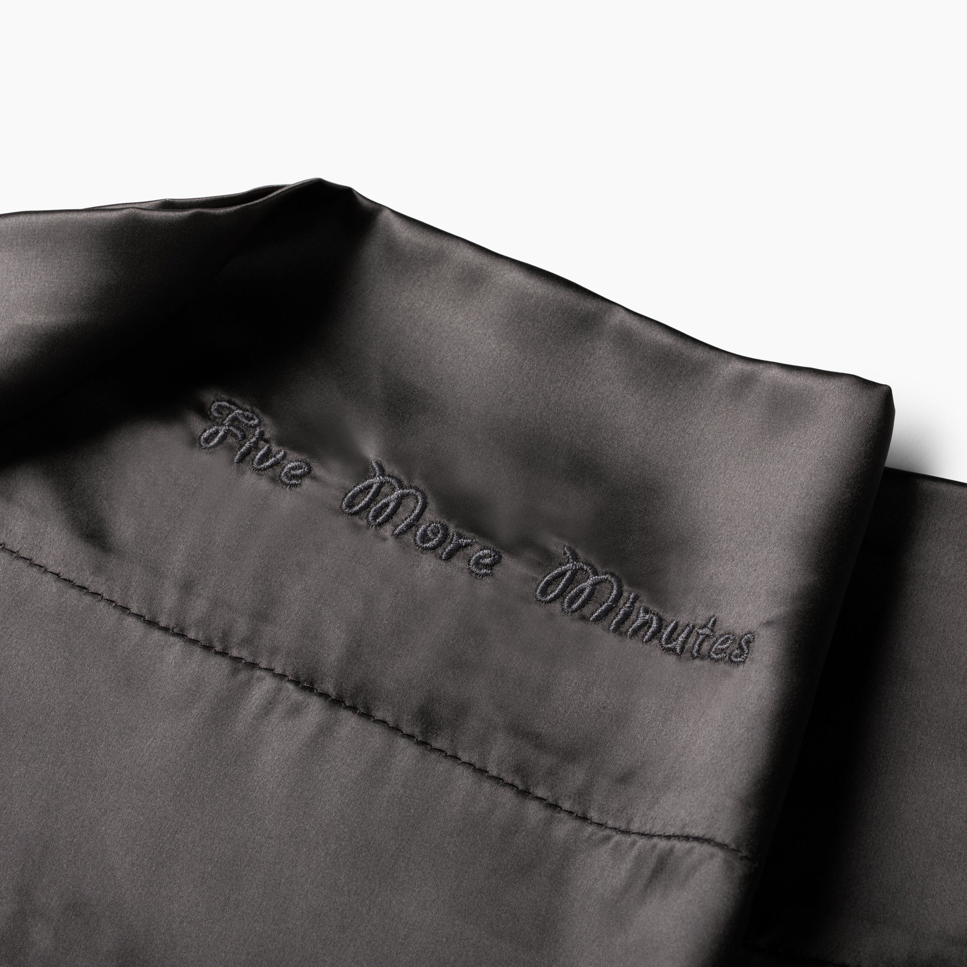 This special edition features delicate embroidery that reads “five more minutes” — a playful nod to those mornings when you just can’t get out of bed. Each piece is ethically cut + sewn in New York, designed to be as kind to the planet as it is to you.